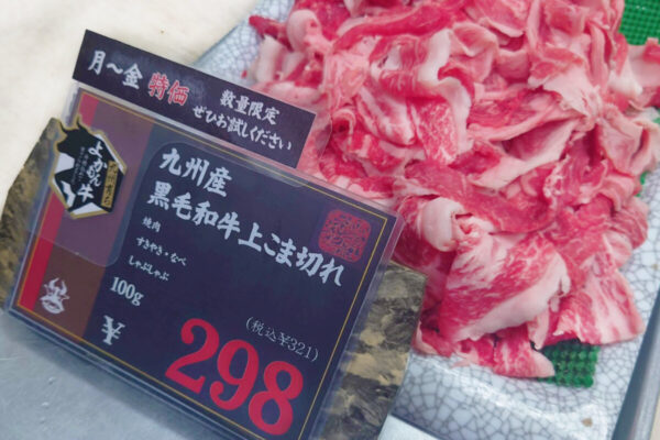 鹿児島県産 黒毛和牛「よかもん牛」 上こま切れ 特価にて販売中 100g298円!